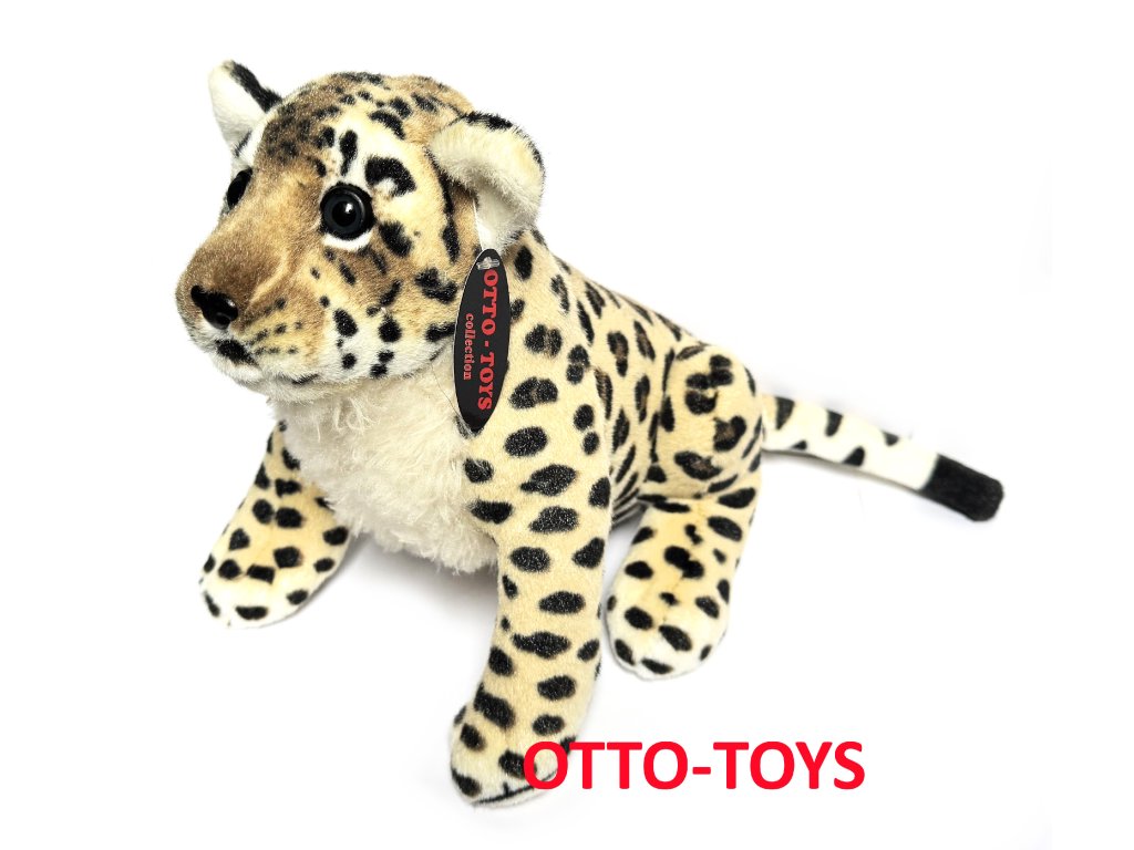 Sedící plyšový leopard z měkoučké a jemné plyše.
